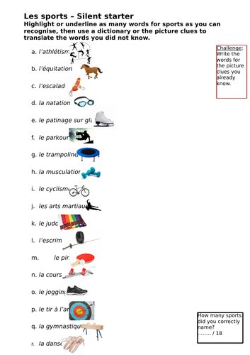 This fantastic sports lesson pack contains french sports vocabulary worksheets that will help your pupils learn vocabulary and phrases to do with sports. Download and complete our free french workbook and .